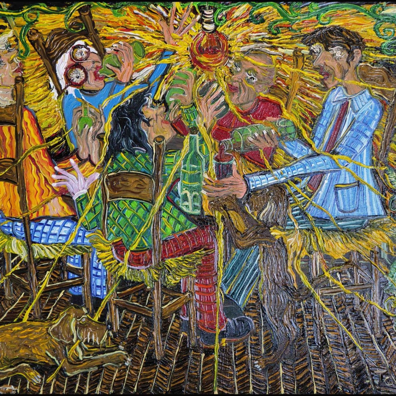Mais c’est en même temps exprimer combien il l’aime, ce bestiaire, objet de toutes ses attentions et source de tous ses travaux. Ses sales gueules ouvrières, ses animaux éfflanqués, ses êtres besogneux restent unis par un destin commun, par des joies collectives, par le bonheur d’être et de faire, sans considération acide sur leur condition. Sa restitution panoramique de la société des hommes et des animaux (aux rôles volontiers échangés) compose ainsi un écho contemporain de Jérôme Bosch et éclaire ses fresques fantasmées : autour d’un arbre maître, un long fleuve que l’homme déroule, sous l’horizon fermé des villes tentaculaires... se déploie sans vergogne le foisonnement des êtres affairés, qui au pique-nique, qui au déménagement, qui à la chasse !