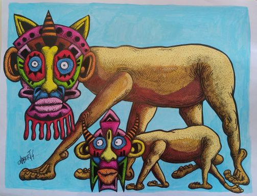 Chabert 4 est un peintre de Normandie. Il a fait un passage éclairé aux beaux arts de Caen mais c'est en autodidacte qu'il a continué à développer sa peinture. Une peinture très colorée ou l'humain est au centre de la toile...