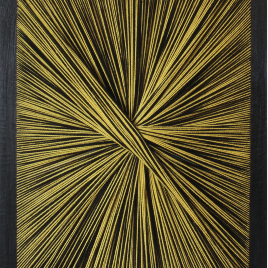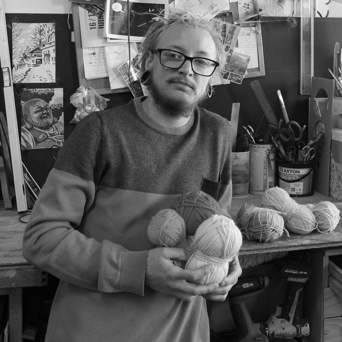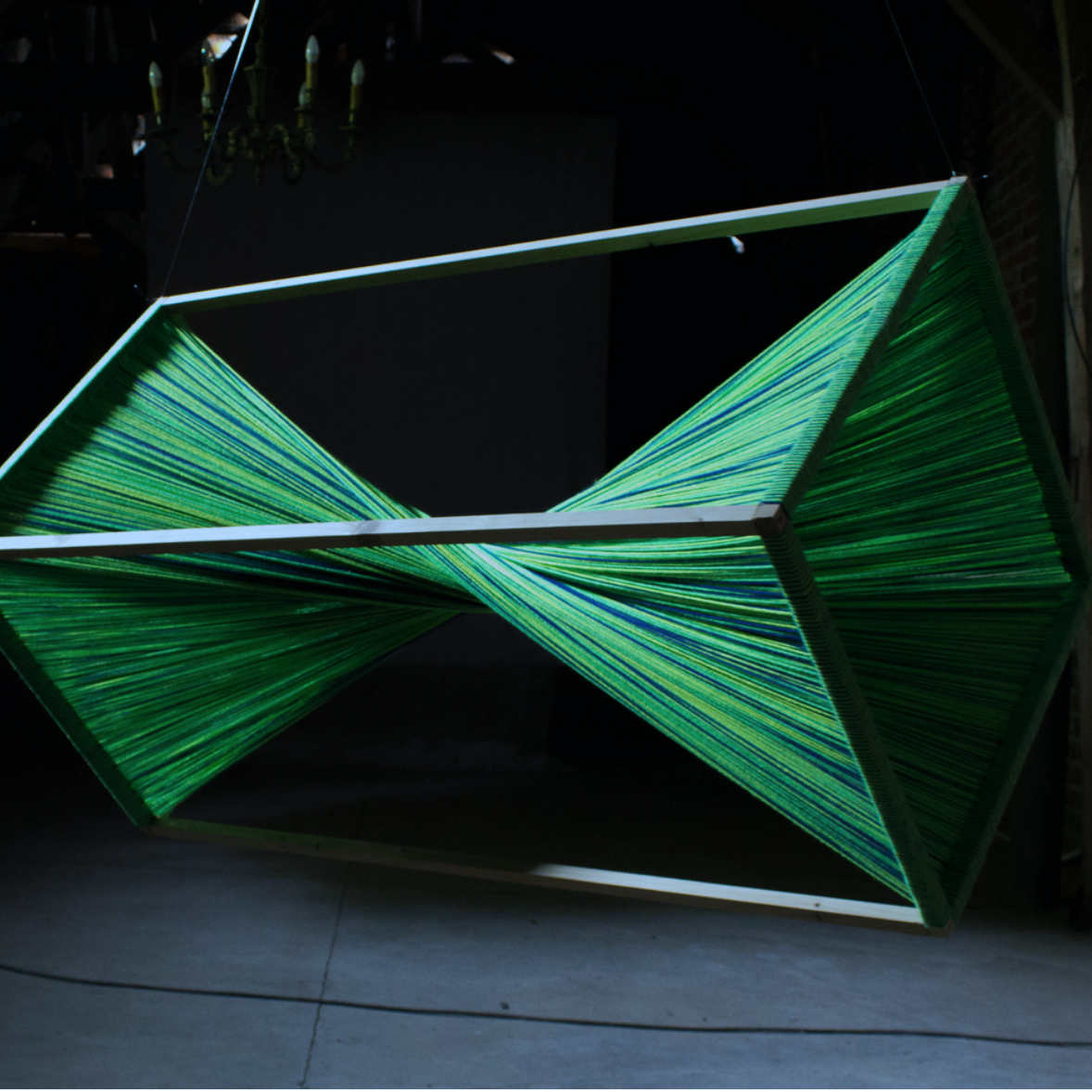 Les tableaux qu’il réalise sont comme la trame des machines Jacquard, lorsque les fils sont tendus, soigneusement alignés, prêts à être tissés pour donner le motif. Car c’est ça qui fascine Maxime : la mise en place avant le tissage. Ces centaines de fils très fins, parfaitement organisés à la main, créant quelque chose de très moderne, graphique et abstrait. À travers son Art, Maxime cherche à reproduire cette étape indispensable avant la création de la dentelle.