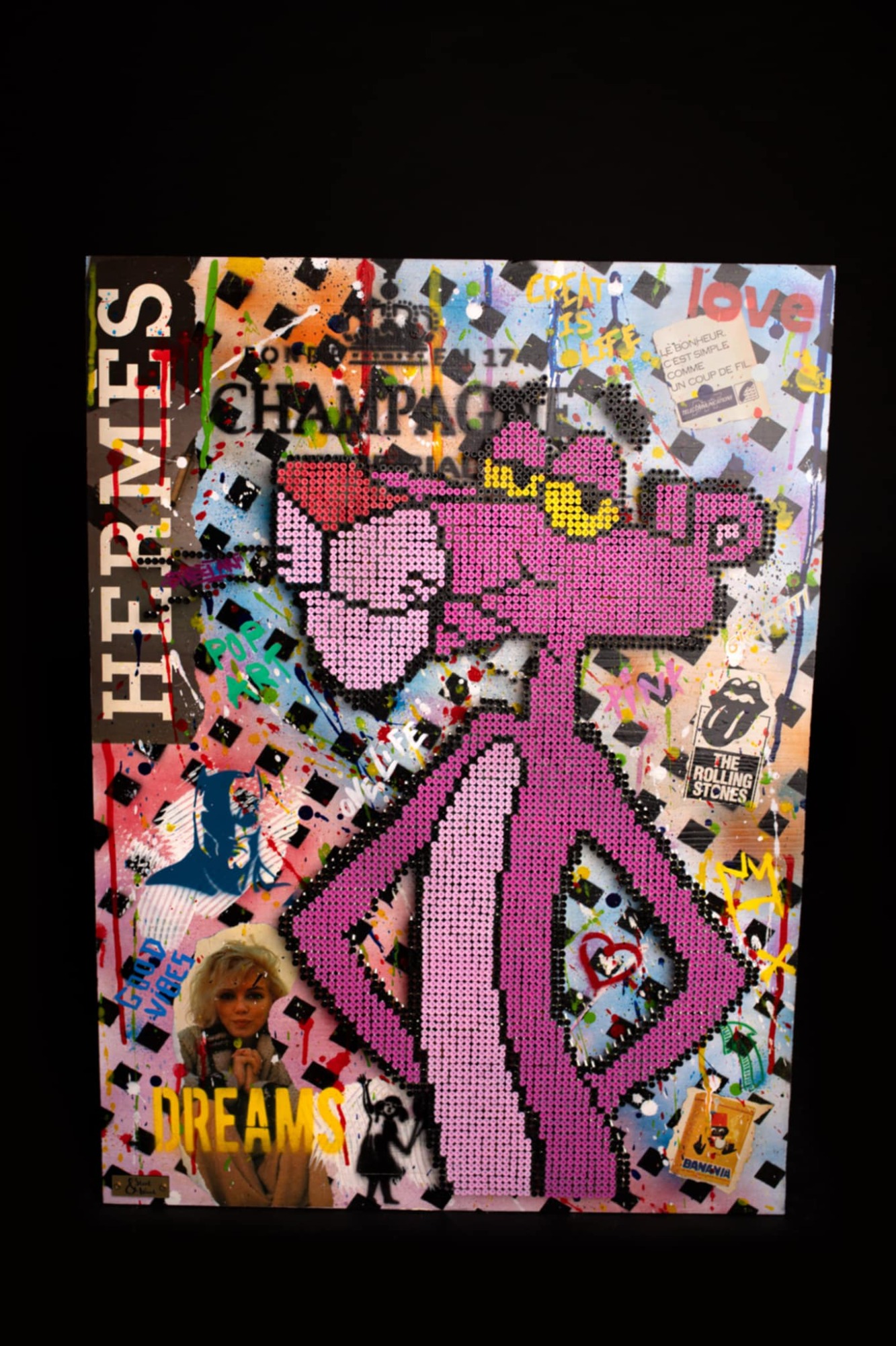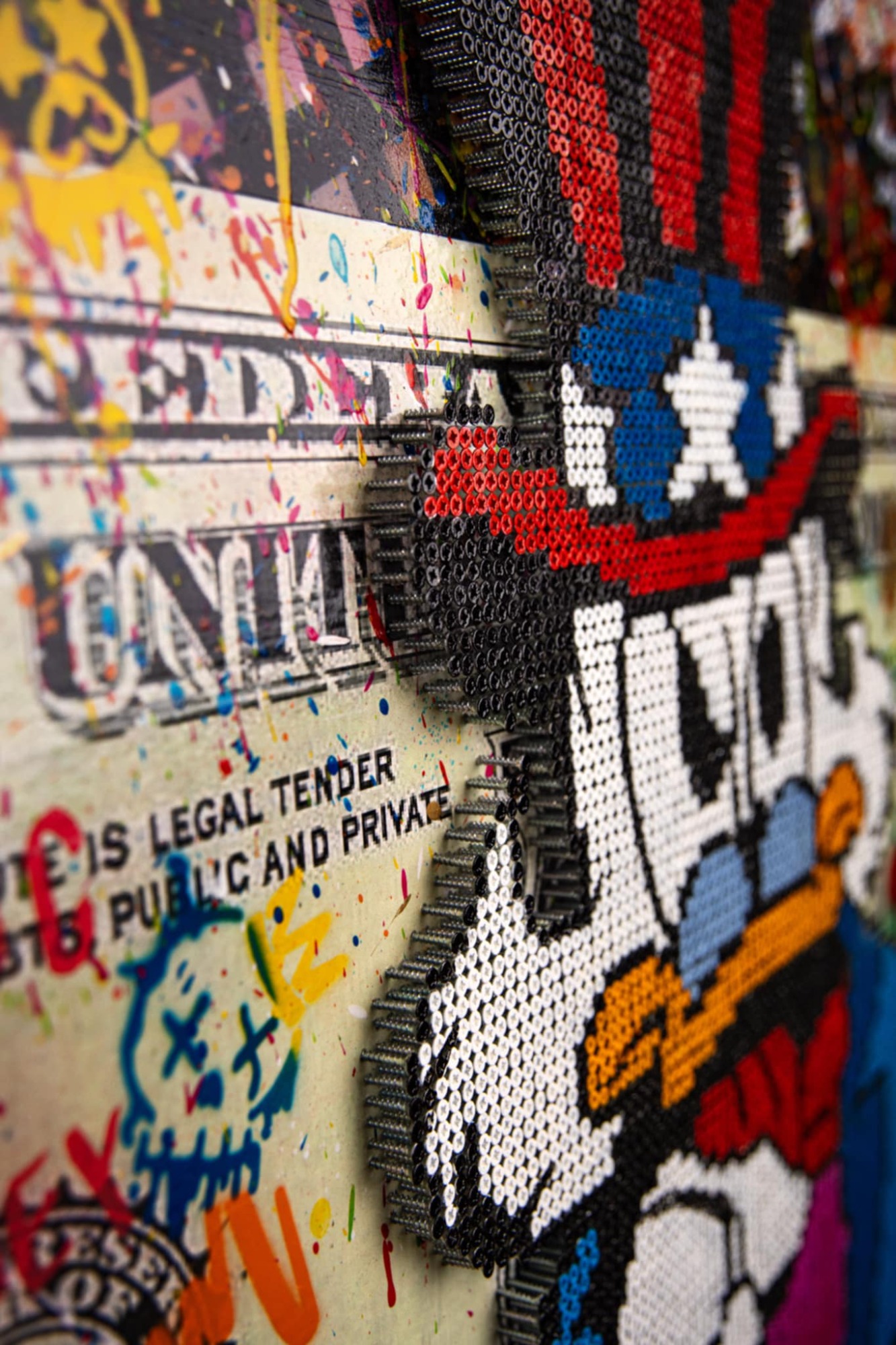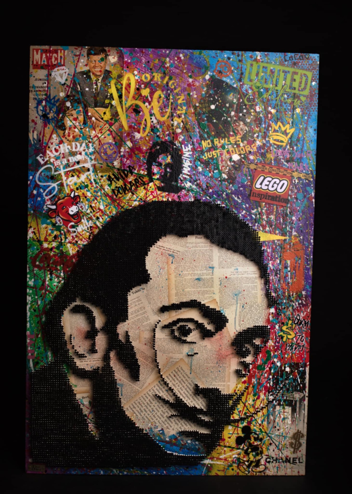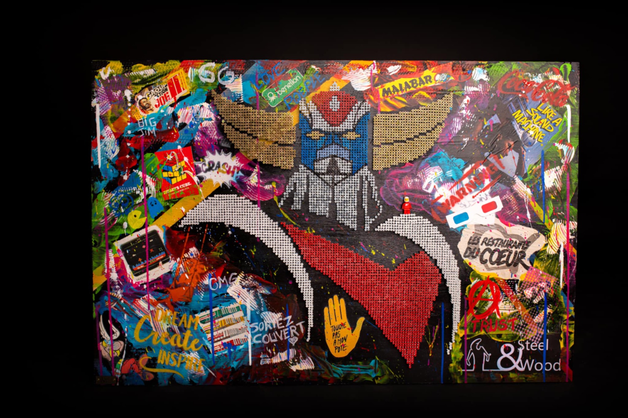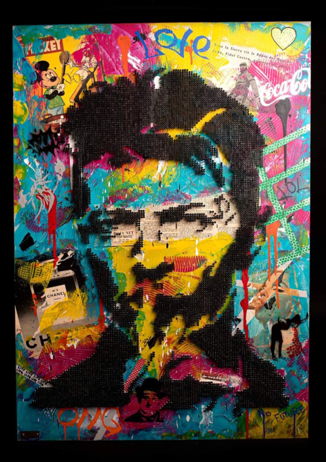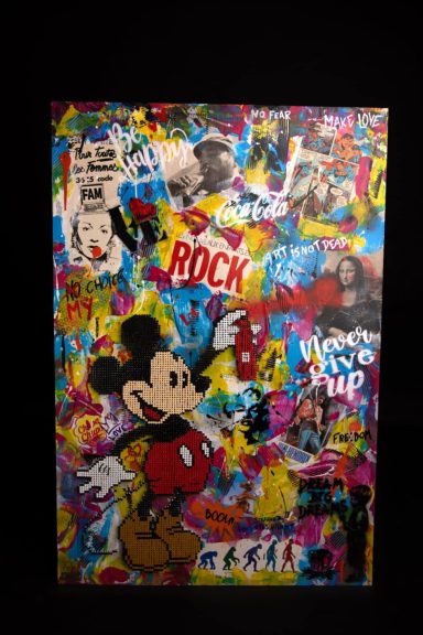 Je travaille par instinct et improvisation, mon style a évolué avec les années me laissant guider par de nouvelles techniques que j’explore continuellement. Le passage vers le pop-art avec la création du « screw pop’art » m’a paru une évidence. Le mélange des styles que sont la peinture, le collage et le vissage apportent une nouvelle dimension au pop’art. Un rien m’inspire, les icones du pop’art et de la pop culture, les événements des dernières décennies… Je possède un style sans me soucier des règles d’art, mes tableaux sont très bien avec leurs imperfections. Différents assemblages de peintures, acrylique ou glycéro sont réalisés à la bombe, au pochoir ou au pinceau. Les vis, principal composant de chaque œuvre apportent un relief incomparable au tableau. Le résultat s’inscrit dans le pur style pop’art, street’art pour un rendu haut en couleur.